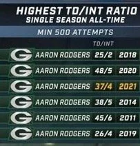 You could write a longform of similar length, breadth and depth as this one on the 2013 Green Bay Packers. Coming off of a humbling loss in the 2012 Divisional Playoffs, and specifically a pitifully pliable defensive performance against 49ers quarterback Colin Kaepernick who dog-walked Clay Matthews and company for 444 total yards, 181 (!!!) of them rushing, the Packers were in need of significant upgrades on the side of the ball that tries to stop their opponents from scoring points. It didn’t really happen. They were 24th against the pass, 25th against the run, 24th in total yards and 25th in scoring. They were a comparatively 2000 Baltimore Ravens-ian 22nd in turnovers. By any measure this team was squarely in the bottom quadrant of defenses in 2013. And this is sad, because the team was outstanding on offense. Although their passing touchdowns (25) and interceptions thrown (16) were relatively mild, they managed to eclipse 4,000 yards passing and 2,000 yards rushing, something only 25 teams ever did in a 16-game season. As one of three teams to do this in 2013, it put them among company such as Tom Brady’s Patriots, who were obviously good, and Nick Foles’ Eagles, who we know from our reading were good. But the Packers had one gigantic difference between themselves and their Bostonian/Philadelphian counterparts – they did it with so. many. different. GUYS. For one, they, the ’13 Eagles, and the 2000 Denver Broncos are the only teams to reach 4K/2K without a 3,000 yard passer (Nick Foles cracked 2,800 yards in his 10 games and change). In fact, the 2013 Packers saw four different quarterbacks take meaningful snaps, including our old friend Seneca Wallace and something named Scott Tolzien, who somehow threw for 717 yards in 2.5 games (one a relief appearance). Scott Tolzien! But the 2013 Packers didn’t just have multiple guys throwing passes – they didn’t even have a 1,200 yard rusher. Their leading rusher, rookie Eddie Lacy, managed to get to 1,178 yards, but that’s still 800+ short of the 2,000 threshold. For that, they had to get solid contributions from guys like James Starks (493 yards), rookie Jonathan Franklin (107), wide receiver Randall Cobb (78), backup QB Matt Flynn (61), our boy Scott Tolzien (55), fullback John Kuhn (38), free safety M. D. Jennings (6 yards – perhaps on a fake punt?), and one other person – starting quarterback for the Green Bay Packers, Aaron Charles Rodgers. You know him more as a passer.
