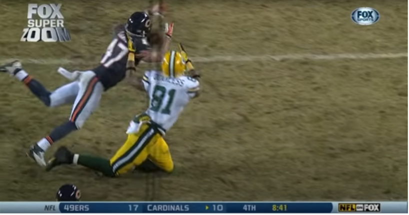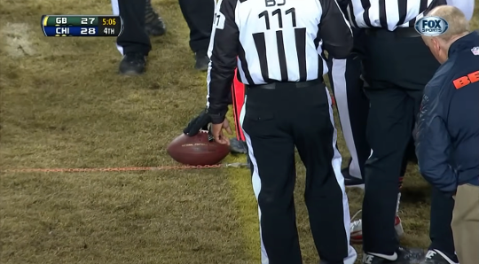 But the Bears again went 3-and-out. It would appear that the Bears, despite having a sample size of exactly three drives, would alternate between touchdown and 3-and-out drives for the entirety of the afternoon. Punting the ball back to the Packers, who almost gave it away for the third time on a muffed fielding of the kick that Jarrett Bush headily recovered, the Bears defense finally sagged somewhat, allowing a 49-yard Packers drive that, despite wasting about a third of the second quarter, resulted in only 3 points from a Mason Crosby field goal. The Packers were giving the Bears the game on a second-place-silver platter. But the Bears disproved the alternating touchdown-to-three-and-out drive pattern on the next drive they embarked on. Devin Hester did his best Micah Hyde impression (Hyde being the fumbler whose insecure ball-handling necessitated the Bush punt recovery), fumbling the ball but recovering it himself. Yet again the Cutlerites could do nothing with their golden opportunity, with tackles from Andy Mulumba (a sack), Mike Daniels and that guy Jarrett Bush again forcing the Bears to punt after another unprofitable three-play sequence. On the next drive, the Packers labored through what might be the longest replay review I have ever seen happen live.