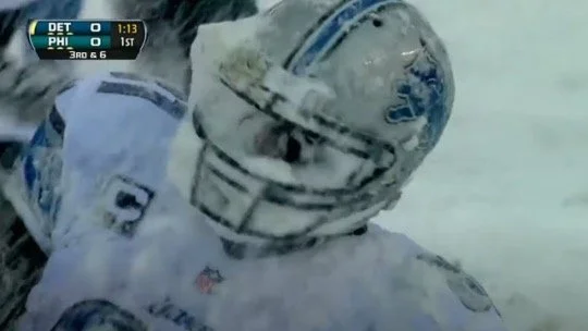 We’ve talked about “winning out” before, too, but for the Packers it was even more dire with 4 games to go than it was for the 6-6 Bears. The Packers could not reach double-digit wins, the accepted threshold for “probably should be in the playoffs” – their 5-6-1 record, a testament to their inability to tamp down bad teams’ offense, would preclude them from the 10-win club. The best they could hope for would be 9-6-1, which they could get to by winning out. Even so, they would need some help from outside. They could not afford to win out and have Detroit win out – at 7-5, and with a 30-point trouncing of the Pack fresh on everyone’s minds, they’d be two games ahead and the unquestioned North champs. Even if they lost to the D-scorching Eagles the next week, Detroit could still go 3-1 – with the Super Bowl-hungover Ravens, the terrible Giants, and the even worse Vikings composing their final three opponents – and still win the division, since even if Chicago equaled them at 10-6, the Lions would hold the season sweep tiebreaker over the Bears by virtue of their convincing (40-32) and razor-close (21-19) wins in Weeks 4 and 10. Detroit had it all in front of them, but sickeningly, they not only lost to Philadelphia – they lost out. Only 10 teams ever have done that, and you can bet these Lions got what they deserved. First, they blew an admittedly difficult, and eminently memorable, game in Philadelphia whose blizzard conditions and snowplow heroism from LeSean McCoy was reminiscent of the loreful 1948 NFL Championship game, which was also played in a driving Philly snowstorm and featured Steve Van Buren setting the then-playoff record for rushing yards in a playoff game. Incidentally, that was the first NFL championship game to be televised. This game was televised too, as all NFL games are now, but the picture quality was probably even worse than the ’48 championship. Seriously: